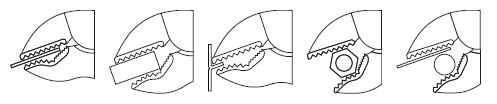 - Three-point shaped bottom jaw, upper jaw with wire groove.